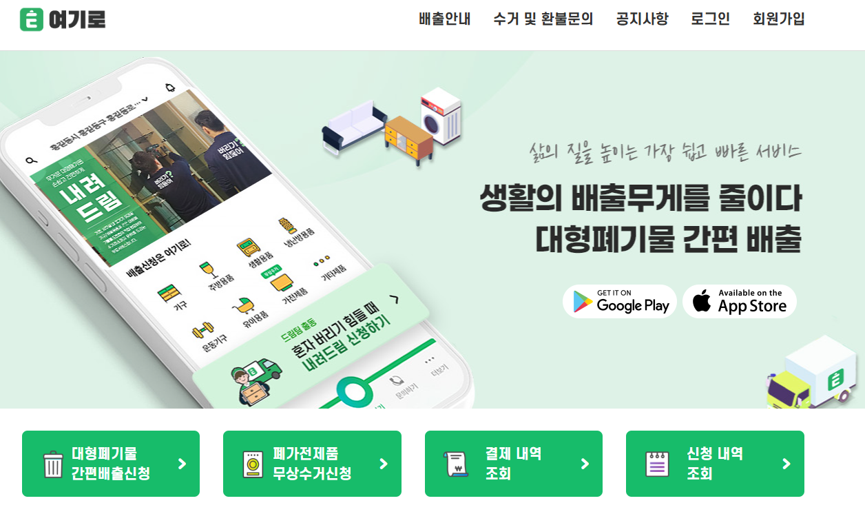 - 수거일·장소 지정: 배출 희망일과 배출장소(단독주택: 대문 앞, 공동주택: 1층 지정장소)를 선택